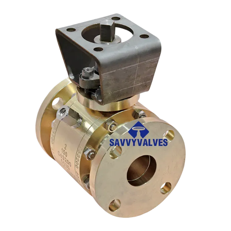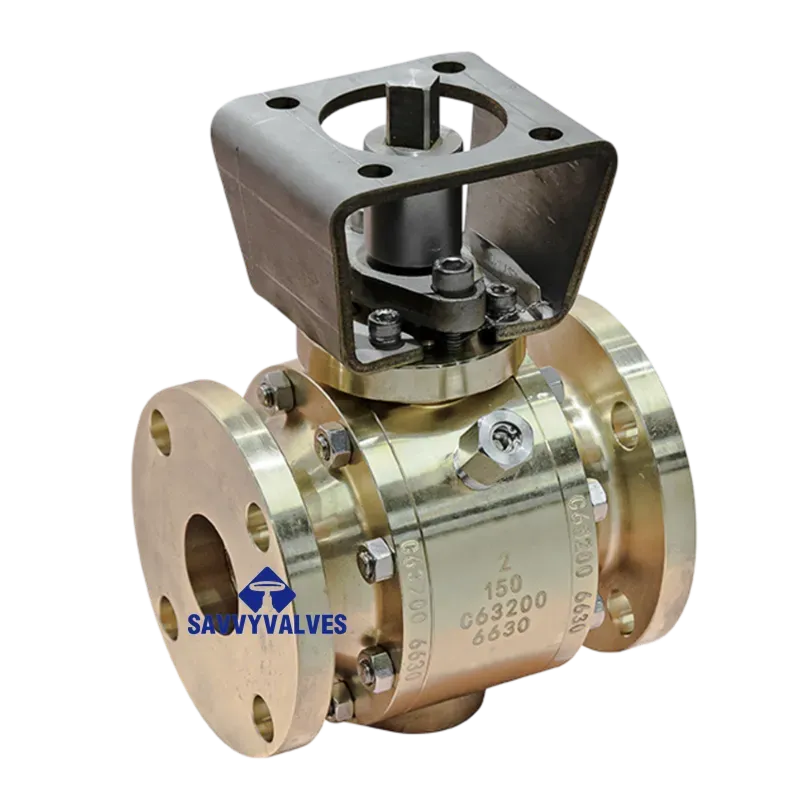 This valve is manufactured from ASTM B150 C63200 forged aluminum bronze. The three-piece body design allows easy in-line maintenance without removing the valve from the pipeline. The trunnion-mounted ball provides low operating torque and reliable sealing under high pressure and large bore conditions. Forged C63200 offers a dense grain structure, superior yield strength, and excellent resistance to seawater corrosion, cavitation, and fatigue. The valve features an integrated ISO 5211 top flange for direct actuator mounting without brackets.